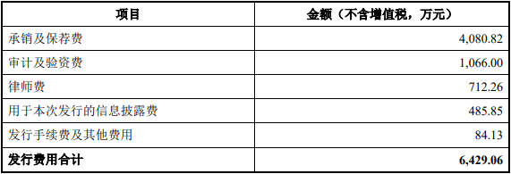 技源集团公开发行新股的发行费用总额为6,429.06万元(不含税),其中承销及保荐费4,080.82万元。